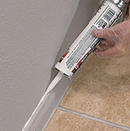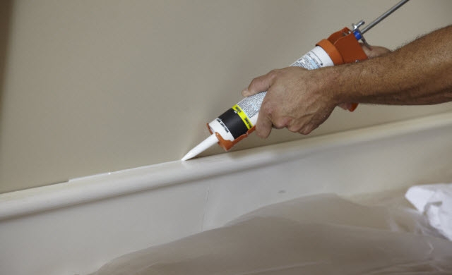 Con una pistola para silicón, aplique en la hendidura o unión una capa delgada de silicón para pintores profesionales.